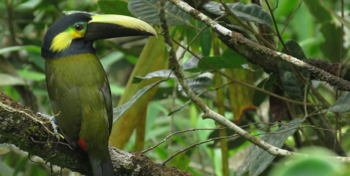 The very first day of the expedition, as the team was ascending to a ridge via a trail carved out of the mountainside by the local guides, Diego Calderón-Franco, the lead biologist caught a glimpse of a Sharpbill. The tiny olive-and-yellow bird is rare. It’s only been seen in Colombia four other times. Calderón-Franco frantically called to the other team members to capture a photo of the bird, but it flew away before anyone else could get in position to see it.